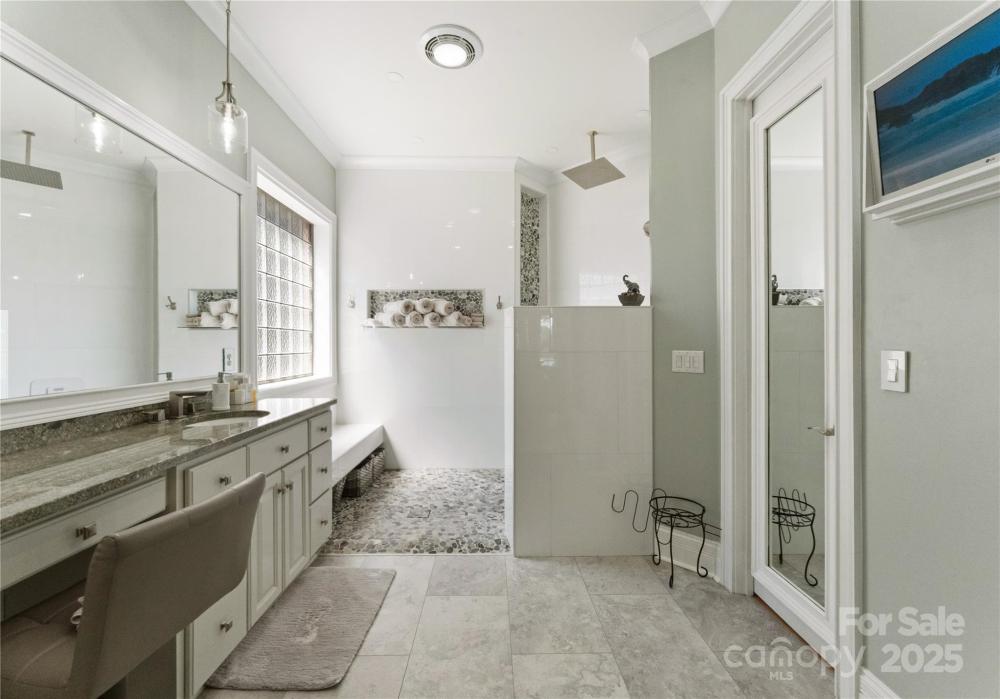 Welcome to this stunning lakefront residence located in the gated community of Reflection Pointe. Positioned on the shores of Lake Wylie, this home blends timeless design with thoughtful updates and incredible views. The primary suite is located on the main level, featuring a recently updated bathroom with modern finishes that create a spa-like retreat. Open living areas are filled with natural light and provide direct access to the expansive upper deck overlooking the water. The exquisitely finished walkout lower level extends the home’s versatility, complete with a theatre room, wine cellar, and generous entertaining spaces. Step outside to the lower-level travertine patio with a saltwater hot tub, perfectly placed to take in the lakefront scenery. Newly replaced steps leading to a floating dock and boat lift. On the third level, a large bonus room offers endless possibilities for hobbies, entertainment, or additional living space. Multiple vantage points—including the deck, patio, fire pit area, and private dock—bring the beauty of Lake Wylie right to your doorstep. Practical features include a three-car garage. Lower level features storage area—plenty of space to keep life streamlined. Reflection Pointe offers resort-style amenities including walking trails, clubhouse, tennis courts, swimming pool, and a community dock. Conveniently located near shopping, dining, marinas, and major highways, this property balances privacy with accessibility. An Invisible Fence is also in place for your pet. This home must be experienced in person to truly appreciate the thoughtful design, brand-new designer roof, recent updates, and breathtaking lake setting. Schedule your private showing today and discover the lakefront lifestyle waiting for you. Community marina with beach area and waterfront pavillon
