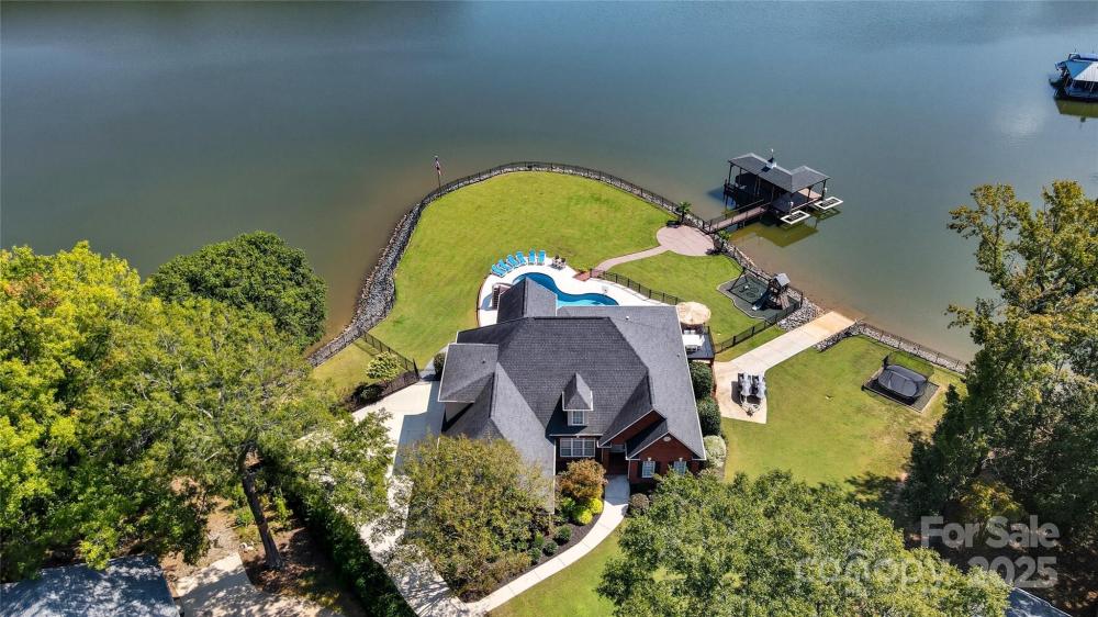 Welcome to Your Lake Wylie Paradise in Beautiful Belmont! Live the lakefront lifestyle you’ve always dreamed of in this stunning, full-brick custom home, perfectly positioned on a level point lot with panoramic lake views and protected conservancy land in the background. Designed to embrace the outdoors and capture breathtaking water views from nearly every room, this property features a massive covered porch, swimming pool with hot tub, and lush, professional landscaping. Whether you're entertaining guests or unwinding with family, this space is ideal. Water lovers will appreciate the private boat ramp, spacious covered dock with boat lift, and two jet ski lifts—ready for endless lake adventures. From the moment you enter the grand foyer with its sweeping staircase, you’re greeted by gorgeous hardwood floors, rich crown molding, and thoughtfully designed living spaces. The formal dining room offers the perfect setting for both elegant dinners and casual gatherings. The Great Room boasts soaring ceilings, a cozy gas fireplace, custom built-ins, and large windows that flood the space with natural light and stunning lake views. The gourmet kitchen features stainless steel appliances, double ovens, granite countertops, a center island, and a sunny breakfast area. Just off the kitchen, the fabulous sunroom invites you to linger with your morning coffee, read a book, or simply soak in the tranquil lake views. It would also make a perfect home office. Relax in the main-level primary suite, complete with tray ceiling, serene lake views, and a spa-like bath with premium finishes. Upstairs, you’ll find two additional bedrooms, two full baths, a spacious bonus room, and a flex room perfect as an office, 4th bedroom, or playroom. Abundant storage throughout ensures everything has its place. There is even a large workshop/storage area in the crawl space. This beauty features a high-efficiency geothermal heat pump for HVAC, along with an electric water heater supplemented by geothermal auxiliary heating. Fully fenced backyard and in-ground irrigation. Recently renovated primary bathroom, fresh paint, and new carpet. Nestled in the charming town of Belmont, enjoy the best of both worlds—peaceful, small-town living with convenient access to Uptown Charlotte, the airport, and major shopping destinations, just a short drive away.
