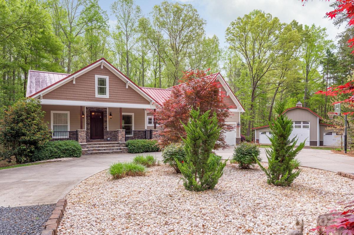 Private country estate on 7.83 gorgeous wooded acres in a 2014 custom-built home with a 2-car attached garage. PLUS detached 1,800 SF 6-car garage/workshop with 14' doors to accommodate an RV or boat. While living the country life, you are just 4 short miles from Lowe's home improvement, WalMart, Publix and more! Only 7 minutes to the amazing rec center with indoor pools, water park, workout facilities. Clover schools too! 30 minutes to Charlotte Douglas airport. High-speed 1G internet means you can work from home while enjoying the view of your estate acreage. This home was custom built with so many amazing quality features like spray foam insulation, a 60-year metal roof, 400A electrical to house and detached garage/shop. Designed as a ranch home with upper bonus room plus finished basement. Use the lower level for secondary living with kitchen features and outdoor access. There is even a movie wall in the basement! Lots of wooded acreage plus open space for gardening and playing.