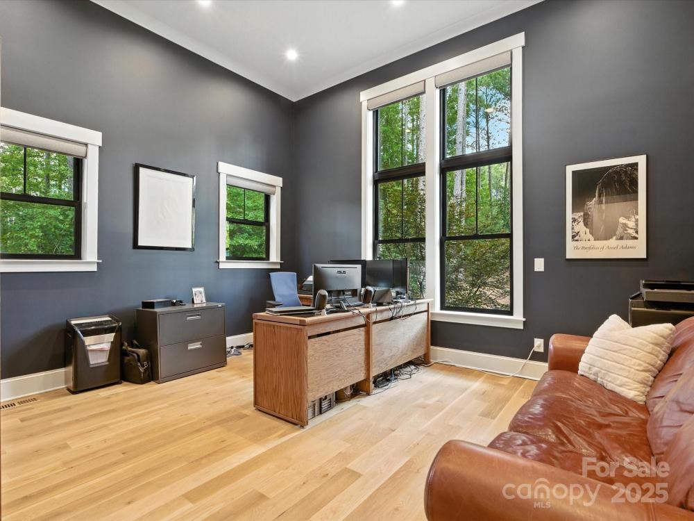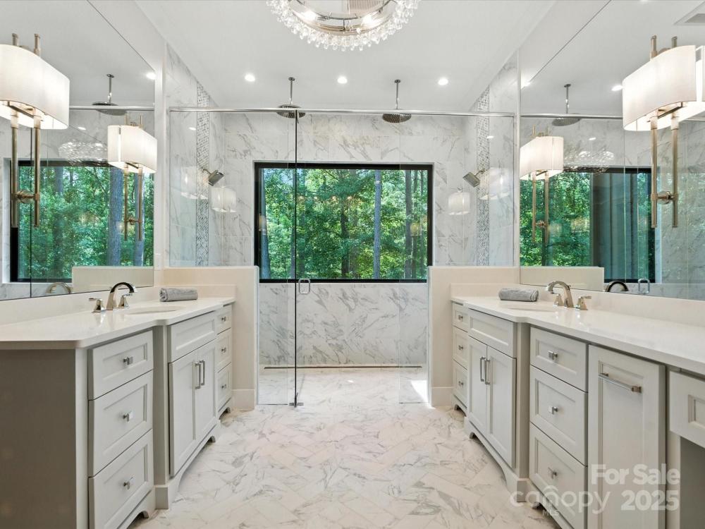 Experience a rare blend of craftsmanship, technology & natural beauty in this custom home offering over 4300 sqft fin space w/nearly 2700 sqft in the walkout daylight basement for future expansion. Unique and rare features include a hidden vault of approx 200 sq/ft that is secured by a 2300 lb armored door, integrated security, and is climate controlled. From the solid mahogany double doors with 6 panel glass, stunning entry chandelier with remote lift, gorgeous 5 inch solid white-oak hardwood floors & open staircase built onsite, every detail impresses. Stunning kitchen showcases Monogram appliances, quartz, mercury glass backsplash, beverage fridge, customized cabinets & scullery w/2nd dishwasher. Great room boasts coffered ceiling, invisible audio (hidden speakers for surround sound),6' linear gas fireplace & stacking sliders with minimal threshold that open to the screened porch, extending the flow for entertaining seamlessly between rooms. Main level primary features cathedral ceiling with accent lighting, a spa-like bath with heated tile floors, 8ft shower w/4 shower heads and 7'x 5' glass view of outdoors for ambiance plus a custom closet that walks through to the laundry room, how convenient! The main level continues with not one but two dedicated office spaces (main office w/13' ceiling). Upstairs there are three bedrooms with one ensuite and others share Jack n Jill. There is also a large attic storage set up for future second laundry room. The walkout daylight basement can be finished as second living quarters for multi generational living or huge entertainment space with pool table and media room. It is pre-plumbed for bathroom, has separate entrance and you could easily add a kitchen with minimal work. In addition, the basement has a separate workshop area (another approx 1000 sqft) with 4th bay garage door that could be used for studio, cars, gym, woodworking, etc. Smart home automation throughout makes it easy to control lighting, window shades, the whole-house generator, security, irrigation and cameras. Automation has both remotes/switches and integrates w/Google Home or Homekit app for control anywhere on the planet! Oversized garages & almost an acre wooded lot w/protected nature space complete this estate. Neighborhood amenities include pool, clubhouse, pickleball, trails & Catawba River access, all just 30 min to Ballantyne. Low Lancaster county taxes. Less than 15 min from the newly opened Costco and Target plus Homegoods, restaurants & more!