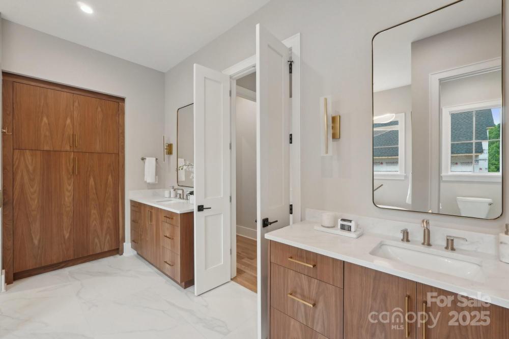 Set within the exclusive Cardinal Crest community, this semi-custom luxury estate perfectly balances privacy and convenience on a beautifully wooded one-acre lot. The thoughtfully designed open floor plan showcases a gourmet kitchen with custom cabinetry, premium appliances, and an expansive island that connects seamlessly to the great room—complete with vaulted ceilings, exposed beams, and a striking floor-to-ceiling fireplace. The main-level primary suite offers a serene retreat with a spa-inspired bathroom and custom walk-in closet. Upstairs includes a secondary primary suite, two additional en-suite bedrooms, and a spacious bonus room ideal for an office, fitness area, or media lounge. The fully finished basement was built for entertaining, featuring a guest bedroom, recreation areas, a stylish bar, and direct access to the covered patio. Designed with the future in mind, the home includes provisions for an elevator, a three-car garage, and an advanced security system. Just minutes from I-485, shopping, and dining, this estate offers the best of Weddington living—peaceful surroundings with city conveniences close by. Don’t miss your opportunity to own in one of the area’s most desirable communities. Schedule your private showing today!