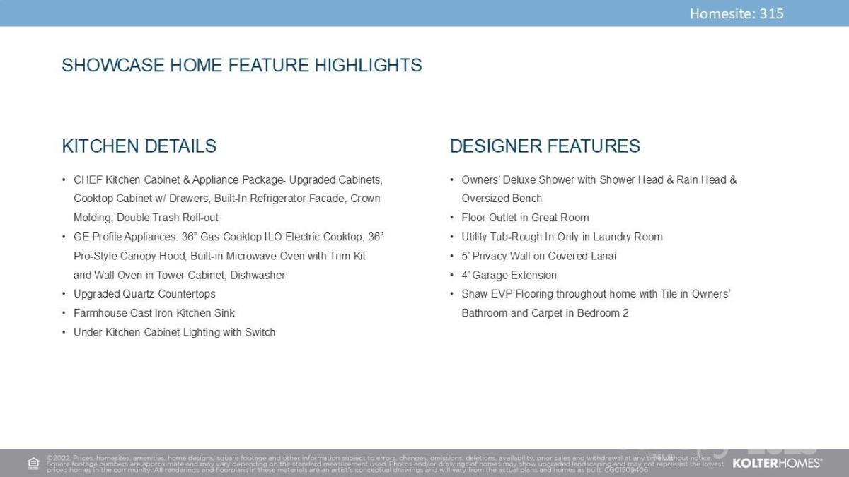 **NEW CONSTRUCTION** This 2 Bedroom, 2 Bath home with a versatile Flex Room and a spacious 2-Car garage is located just a short stroll from the community’s Amenity Center, picturesque nature trails, and a future Community Garden. Inside, the Owner’s Bathroom offers a luxurious daily experience with a rain head shower, standard head, and an oversized bench. The gourmet kitchen is a showpiece, fitted with quartz countertops, upgraded cabinetry, GE Profile appliances, a gas cooktop, and a farmhouse cast iron sink that adds a charming touch. Complete with under-cabinet lighting and a built-in refrigerator facade for sleek symmetry. The extended garage offers extra space for hobbies or storage, and the covered lanai has a 5-foot privacy wall inviting quiet moments outdoors. The backyard opens to a peaceful common area with no direct rear neighbors and newly planted trees that frame a natural, elevated landscape behind the home, enhancing privacy.