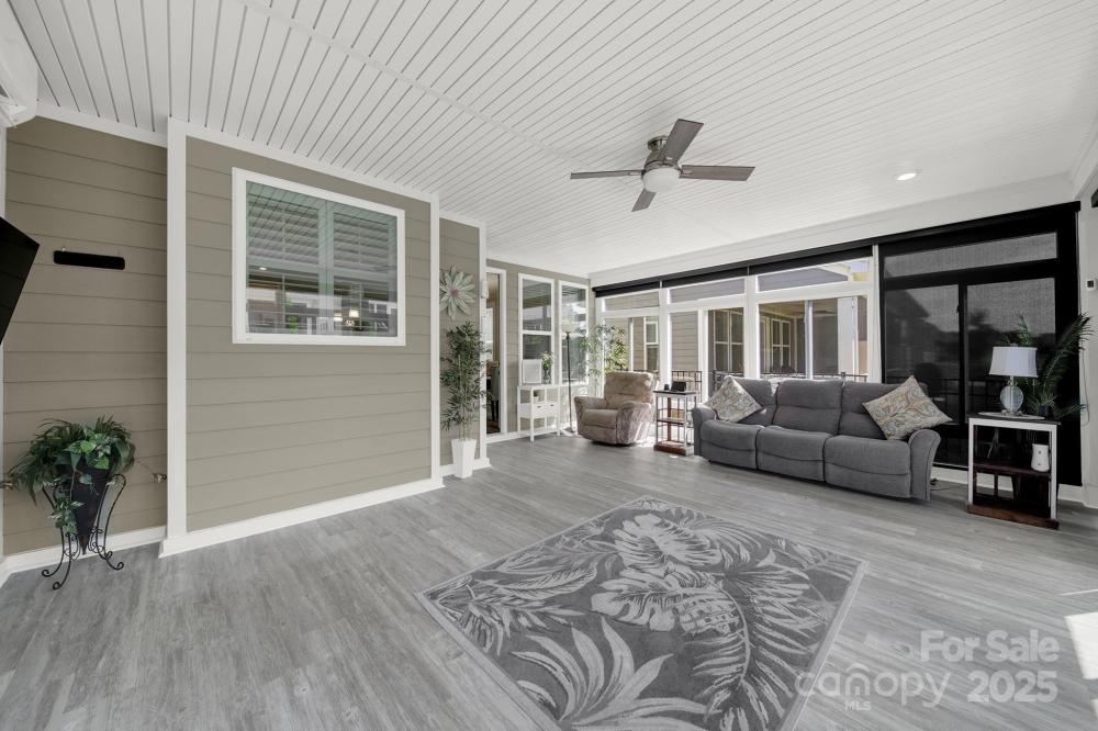 Discover your dream home in Cresswind's premier 55+ community! This stunning, practically new home offers luxurious upgrades and a spectacular custom-finished sunroom designed for year-round enjoyment. KEY FEATURES & DESIGNER FINISHES Exceptional Curb Appeal: Greet guests with a Beautiful Stone Front elevation that boasts fantastic curb appeal. Elevated Trim Package: Enjoy premium architectural details with Crown Molding in the Foyer, Great Room, and Kitchen, complemented by 5.5-inch baseboards throughout the entire home Gourmet Chef's Kitchen: A magnificent kitchen designed for entertaining, featuring a top-tier GE Profile Double Oven, Profile Counter-Depth Refrigerator, Profile Dishwasher, and GE Microwave. The spacious layout includes a large island and a bright, adjoining dining area. Flexible Living Space: Includes a Large Office/Study that is easily converted to a private third bedroom to suit your needs. CUSTOM INDOOR/OUTDOOR OASIS Ultimate Sunroom: Step into a true four-season space: a 378 sq. ft. fully insulated, finished sunroom featuring Argo-Low E glass, durable RVP flooring, and a dedicated 24,000 BTU mini-split system for perfect climate control. Exclusive Privacy: The sunroom is outfitted with custom 1% solar shades (the tightest weave available) for maximum UV protection, glare reduction, and daytime privacy. Finished Patio & Grill Nook: Seamlessly transition to the outdoors onto a Finished Large Patio with a dedicated Grill Nook, perfect for alfresco dining and easy entertaining. LUXURIOUS MASTER RETREAT & UPGRADES Owner’s Suite: Relax in the Large Master Bedroom featuring an elegant Tray Ceiling and an expansive en-suite bath. Spa-Like Bathroom: The master bath includes separate designer mirrors and a Large Spa Shower. Walk-In Storage: Large walk-in closets in the Master Suite and a generously sized Spare Bedroom with upgraded carpet padding provide ample storage and plush underfoot comfort. Extended Garage: A 4-Foot Extended Garage provides extra depth for storage, hobbies, or a workshop space. This is more than a home; it’s a resort-style lifestyle upgrade!