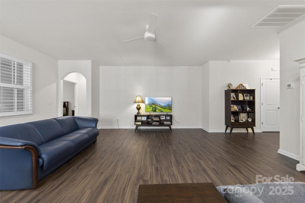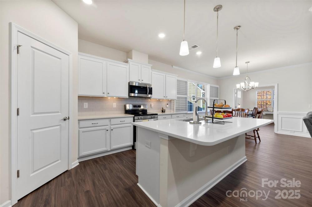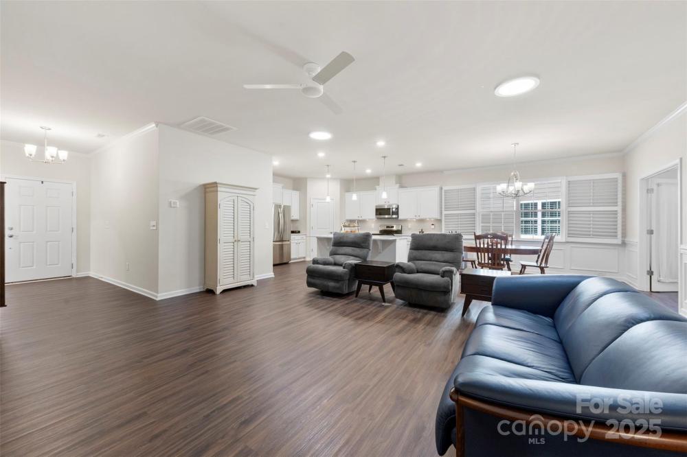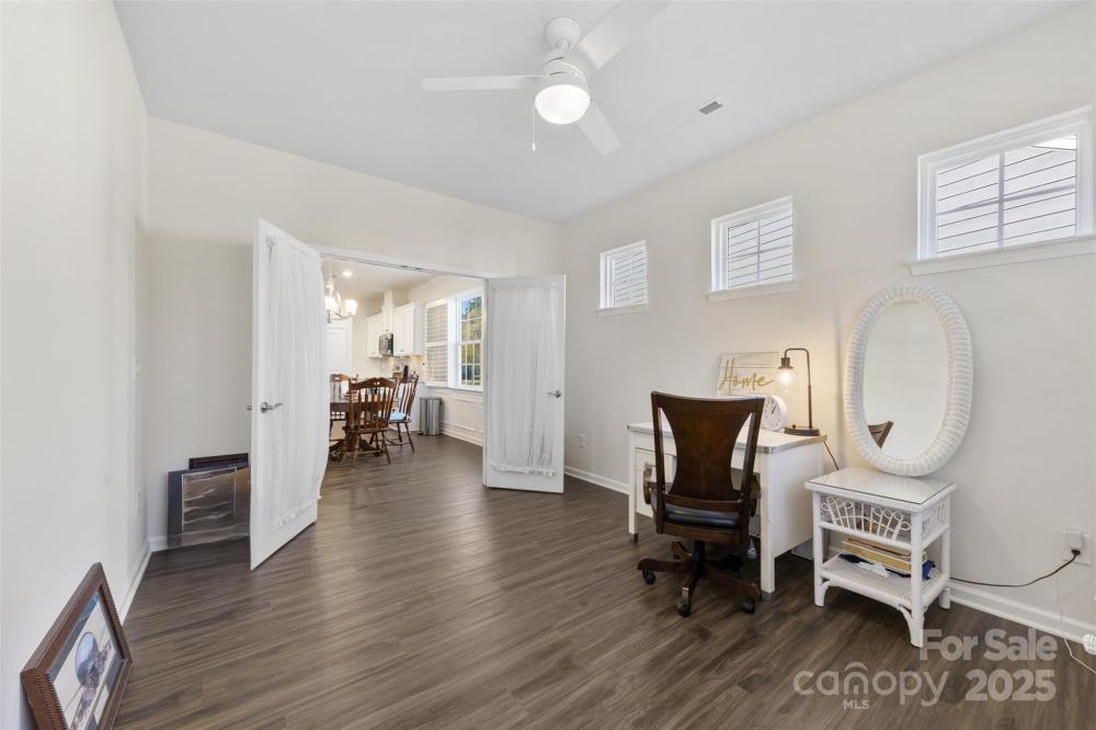 Welcome to Imagery at Mountain Island Lake, a premier 55+ active-adult community offering low-maintenance living and an exceptional lineup of resort-style amenities. This beautifully appointed one-story home is ideally situated in one of the most sought-after lake communities in the Charlotte area. Designed with comfort and functionality in mind, this 2-bedroom, 2-bath home with an office/flex room features a spacious open floorplan that seamlessly connects the living, dining, and kitchen areas—perfect for both everyday living and entertaining. The kitchen showcases quartz countertops, crisp white cabinetry, stainless steel appliances, and a large island with breakfast seating, along with convenient nooks ideal for a coffee or beverage station. A split-bedroom layout offers privacy, highlighted by charming arched walkways leading to each suite. The French-door office provides a bright, quiet space for work or hobbies. The home is filled with natural light and enhanced by plantation shutters throughout for added privacy. Durable luxury vinyl plank flooring spans the main living spaces, with tile flooring in all baths. The serene primary suite features a spacious bath with dual vanities and quartz countertops. Step through the main living area onto a large screened-in porch, then out to an extended paver patio overlooking the community’s wooded walking trails—a peaceful and private outdoor retreat. The generous laundry room provides excellent flexibility, with space for a utility sink, folding station, or extra storage. Living in Imagery means enjoying an unparalleled suite of amenities, including a clubhouse, fitness center, heated resort-style pool (open May–October), lighted pickleball and tennis courts, walking trails, dog park, lake access, kayak launch and storage, plus a network of creative cabins featuring a library, pottery studio, art studios, sewing cabin, and celebration spaces. A full-time Lifestyle Director curates a robust calendar of events, clubs, and activities, creating a vibrant and social lakeside community. A future community dock is also planned nearby. This home offers the ideal blend of comfort, privacy, and active-adult living in a truly exceptional lakefront neighborhood.
