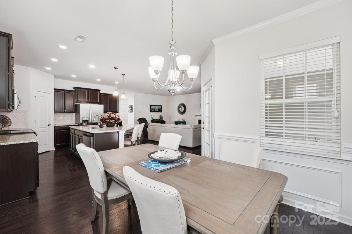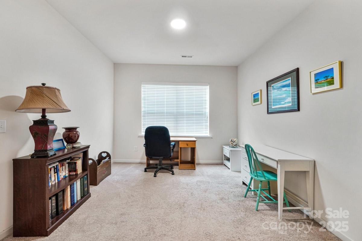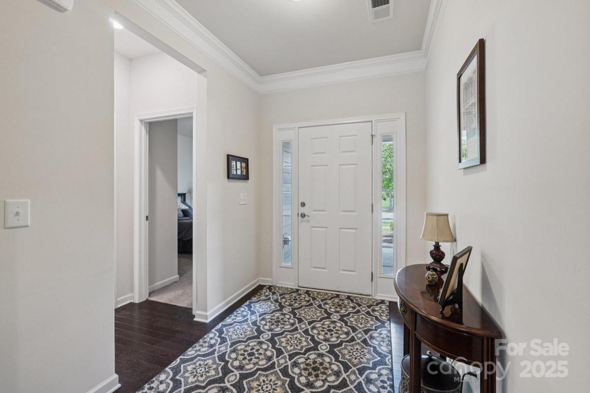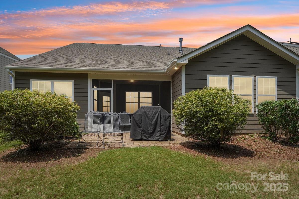 Welcome to effortless living in the highly sought-after gated Tree Tops community! This beautifully designed 2-bedroom, 2-bath home with a private office offers a spacious open floor plan, perfect for both entertaining and everyday comfort. Dark wood floors flow throughout the main living areas, leading to a gourmet kitchen with an oversized island, pantry, and abundant cabinetry, all open to the dining and great room. Relax with your morning coffee, or on a sunny afternoon in the large screened in porch. The tranquil sound of nature surround you, as this peaceful lot has no neighbors in back. Enjoy a low-maintenance lifestyle with landscaping included, giving you more time to take for the incredible amenities—a clubhouse, fitness center, pool, lake with kayaks, walking trails, pickleball, bocce, dog park, and hobby cabins for social events. Nestled just minutes from Indian Land and close to Charlotte, this home combines luxury, convenience, and an active community lifestyle.