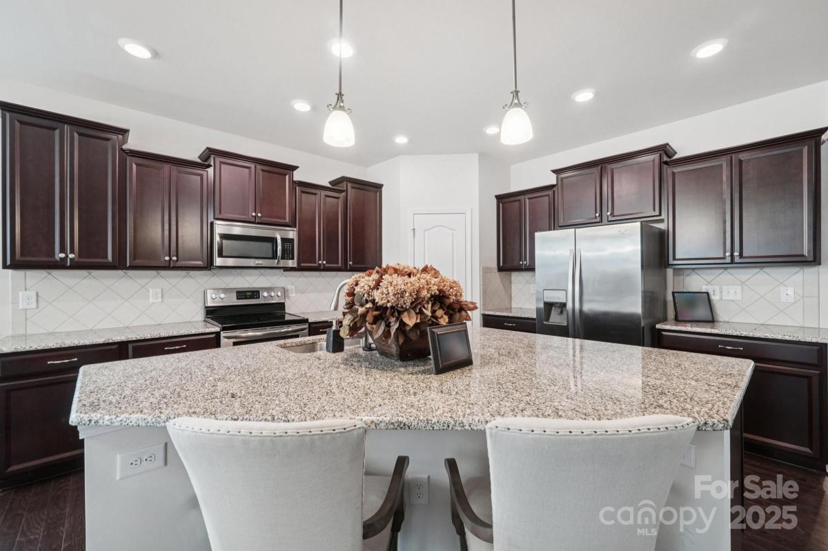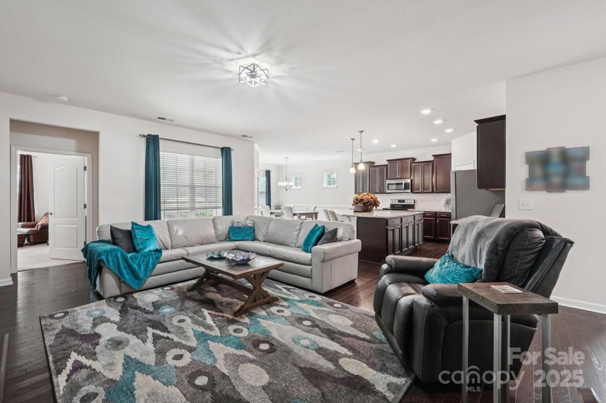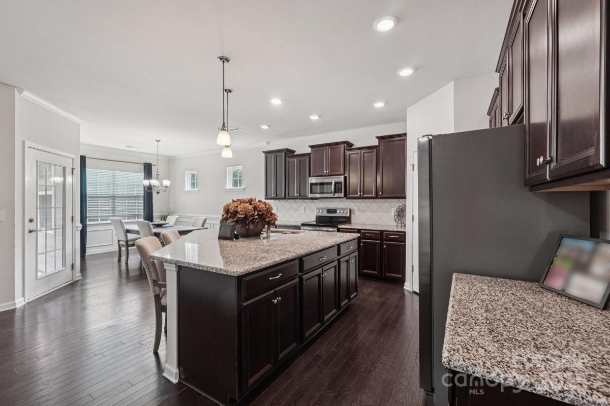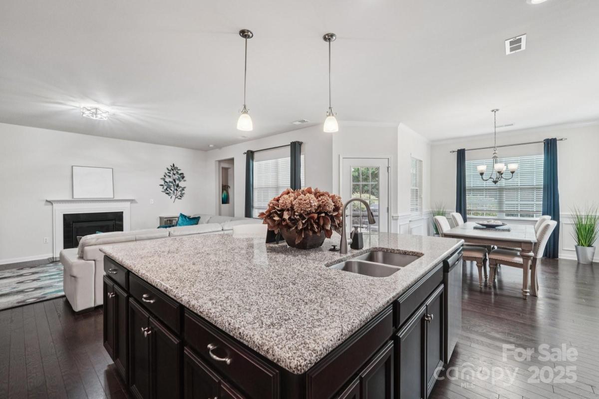 Welcome to effortless living in the highly sought-after gated Tree Tops community! This beautifully designed 2-bedroom, 2-bath home with a private office offers a spacious open floor plan, perfect for both entertaining and everyday comfort. Dark wood floors flow throughout the main living areas, leading to a gourmet kitchen with an oversized island, pantry, and abundant cabinetry, all open to the dining and great room. Relax with your morning coffee, or on a sunny afternoon in the large screened in porch. The tranquil sound of nature surround you, as this peaceful lot has no neighbors in back. Enjoy a low-maintenance lifestyle with landscaping included, giving you more time to take for the incredible amenities—a clubhouse, fitness center, pool, lake with kayaks, walking trails, pickleball, bocce, dog park, and hobby cabins for social events. Nestled just minutes from Indian Land and close to Charlotte, this home combines luxury, convenience, and an active community lifestyle.